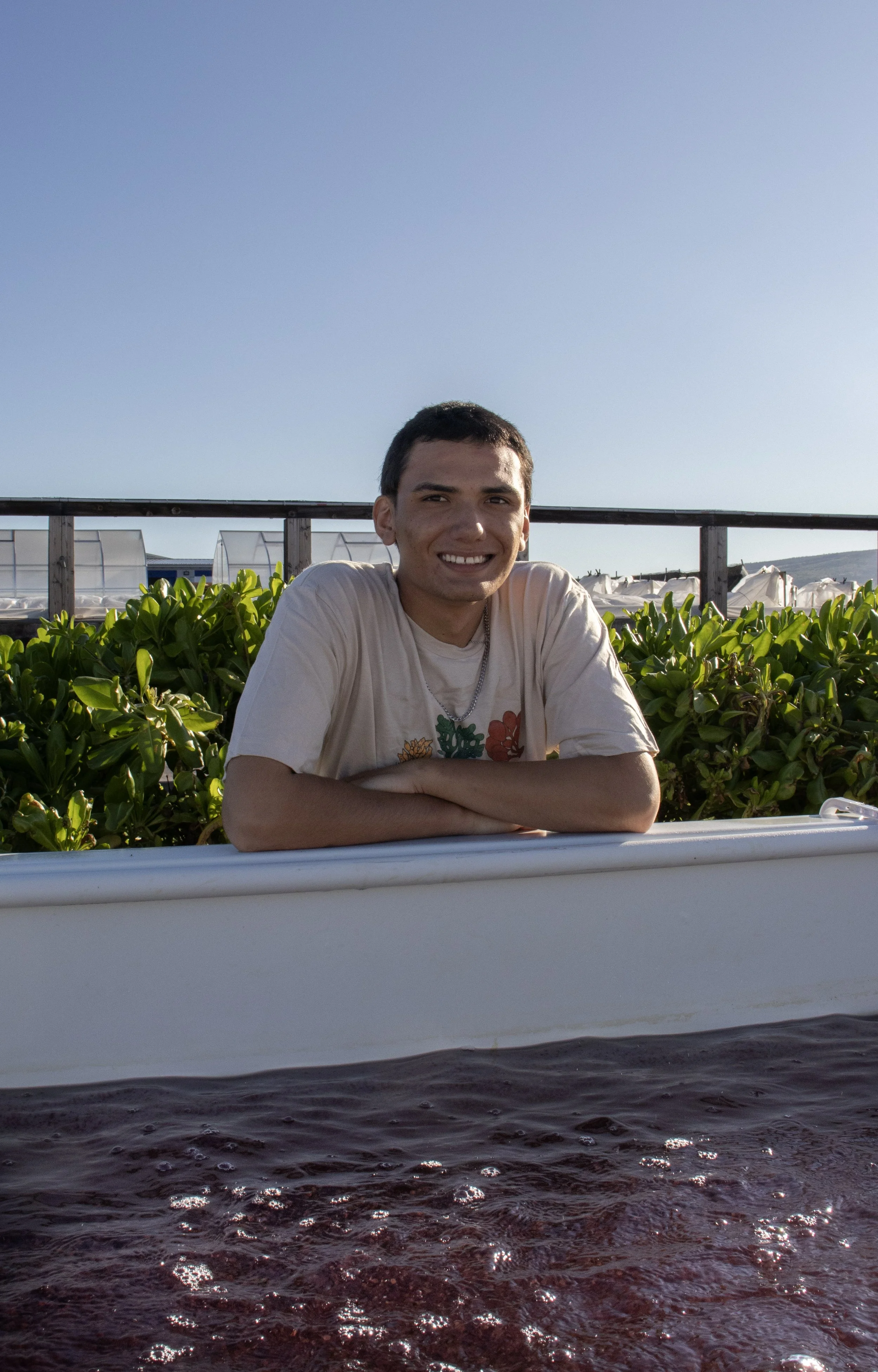 From the lakes of Minnesota to the beaches of West Hawaiʻi, Jake has always been a die-hard water enthusiast. He holds an M.S. in Materials Engineering and brings expertise in manufacturing, chemistry, materials science, and collaboration to his role at Symbrosia. Known as a tech wiz, Jake finds unique solutions to simplify farm labor and streamline data, often building custom tools and “robots” that help the team achieve production goals. He thrives on tackling a wide range of challenges and supporting Symbrosia’s mission through innovation and problem-solving.